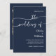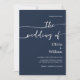 Anuncie seu dia especial com este convite elegante para o casamento de marinho com um roteiro minimalista e espaço para uma foto de casal favorita. Uma mistura perfeita de eternos e modernos para casamentos na moda. Personalizável com seus nomes, data e detalhes do local.