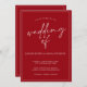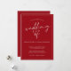 Mínimo Convite De Casamento De Crimson Red Script. Estique seus convidados de casamento com este convite de casamento vermelho, com um belo roteiro branco em um impressionante fundo vermelho. Este Convite tem um espantoso criminoso design vermelho, com vibrações modernas e mínimas, perfeito para o seu casamento simples, moderado e minimalista. O layout mínimo e na moda chama a atenção para o roteiro branco, contrastando com o fundo vermelho. Este convite vai dar o tom de um belo cenário de casamento rodeado por florais brancos, cobre ou pincelados, e um embelezamento de casamentos vermelho. Uma adição perfeita a qualquer celebração de casamento ruidosa ou bonita.