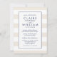 Misturando elementos modernos e tradicionais, nosso convite para o casamento Metro Stripe oferece estilos listrados clássicos em uma paleta sutil e eterno de marfim creme, branco nítido e azul marinho. Largas faixas horizontais em creme e quadro branco seus detalhes de casamento em uma mistura de blocos modernos e tipos tradicionais de script em marinho. Cartões invertidos a azul de marinho sólido.