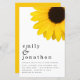 Casamento com tipografia moderna gigante de girassol. Um tamanho maior de 5,5" x 8,5" a um preço orçamentário, em um STOCK CARD SEMI GLOSS de 110 lb, excelente de convites, aproximadamente na mesma espessura de um cartão postal, ou um estoque LINEN elegante de 110 lb - para um luxo, ligeiramente mais fino, com um valor de excelente. OBSERVE QUE OS ENVELOPES OPCIONAIS SÃO UM POUCO MAIORES EM TAMANHO A 6,75" x 9" aprox. Este alternativo de tamanho de orçamento também está disponível em outras opções de papel. O papel FELT de 100 lbs é colorido por buff, NÃO branco, então adiciona um toque rústico. O estoque de papel MATTE de 80 lb é branco brilhante, para impressão nítida, excelente para seus menus e programas, enquanto o papel SATIN de 80 lb é fino e leve, ideal para gabinetes. Um girassol gigante está no canto superior direito e seus primeiros nomes são grandes em na moda para baixo à esquerda com os detalhes embaixo. Personalize facilmente o texto.