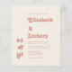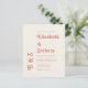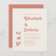 Este convite retro de casamento moderno apresenta texto de terracota sobre um fundo branco. Adicione os nomes e as iniciais do monograma da noiva e do noivo à tipografia de exibição do na moda retro e os detalhes na fonte sans serif. O reverso é uma sombra de terracota sólida. NOTA: os envelopes não são incluídos automaticamente nestes convites de orçamento, portanto lembre-se de escolher a opção "envelopes brancos"!