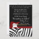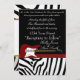 Perfeito para um casamento, trocando votos num presente de amigos. Esse cartão branco de zebra fará de qualquer casamento o melhor que se lembrar, com o convite branco e preto. Violão elétrico vermelho e uma faixa vermelha através. Com a noiva e o nome do noivo acima do pescoço do violão.