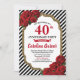 Desenhado com rosa vermelha e moldura com brilho dourado. As listras pretas e brancas adicionam um toque de elegância moderna.