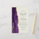 A borda esquerda deste elegante convite de casamento moderno apresenta uma cor d'água roxa, borda agitada, aparada com falso brilho dourado. O texto personalizável combina manuscrito, copperplate e fontes itálicas em cinzas de carvão em um fundo de marfim. Adicione mais detalhes no verso, juntamente com um código QR para ajudar seus convidados a visitar seu site de casamento.