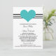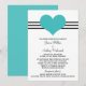 Simples e encantador convite para o casamento do coração do Mod, com uma banda tripla de listras e um coração querido em turquesa. Este doce convite, mas minimalista, é perfeito para um casamento moderno e elegante. Fácil de personalizar, simplesmente adicione seus detalhes de casamento. Clique em "Personalizar" para encontrar opções adicionais de personalização.