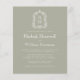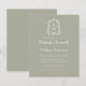 Este elegante design de convite de casamento inspirado em vintage apresenta um par de iniciais monográficas brancas em letra serif aberta acima e abaixo de uma linha divisória e rodeadas por uma crista botânica de arte de linha num fundo verde de sábio. A parte traseira da placa é verde estável.