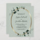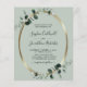 Orçamento Tudo em um Eucalyptus Dourado Código QR Convite de Casamento... A frente do nosso convite de casamento botânico luxo "frente e trás" do orçamento apresenta uma estrutura oval metálica dourada embelezada com folhas de eucalipto abarrotadas de esmeraldas em um fundo verde sábio. A parte de trás do convite contém todos os detalhes que você normalmente veria em cartas separadas no pacote de casamento. Este convite de casamento de dois lados do estilo moderno foi projetado para ser elegante e consciente do orçamento... para não falar em economia de tempo. No verso há também um exemplo de gráfico de código QR que você pode substituir por seu próprio código digitando apenas o URL do seu site de casamento... no modelo de Personalização. Todo texto de exemplo pode ser facilmente revisado com suas próprias informações sobre o modelo de personalização. Os cartões de orçamento não vêm automaticamente com envelopes, assim como os cartões de convite tradicionais, mas você pode comprá-los na mesma página na saída, se desejar.