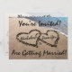 "Você está convidado!" em texto elegante, ou facilmente altere a redação para esses convites de casamento populares. Uma bela e original fotografia profissional de dois corações escritos, desenhados na areia ao longo da água azul do oceano para significar amor e romance. Insira facilmente o nome da noiva e do noivo em cada coração como mostrado, e a data abaixo deles. Coloque seu texto personalizado e detalhes e informações no verso deste convite popular. Ótimo conceito para próximos engajamentos de verão, casamentos de destino na praia, aniversários, ou convites e anúncios de "salve a data" para o casal feliz.