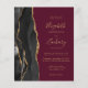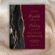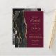 A borda esquerda deste elegante convite de casamento moderno apresenta uma coloração aquosa preta, borda agitada, aparada com falso brilho dourado. O texto personalizável combina manuscritos dourados, copperplate e fontes itálicas em fundo burgundy. O verso apresenta um design de agate preto e dourado correspondente. NOTA: os envelopes não são incluídos automaticamente nestes convites de orçamento, portanto lembre-se de escolher a opção "envelopes brancos"!