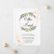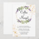 Bela grinalda floral de lavanda com elementos de fundo dourado para o seu convite de casamento. Fácil de personalizar. Party Parti PH © Mais designs disponíveis em nossa loja.