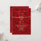 Ousado e moderno, este convite de casamento vermelho e dourado apresenta um fundo abstrato brilhante com um design de coração de corda minimalista e tipografia elegante. Perfeito para casamentos formais, culturais ou do Dia dos Namorados, este design combina cores marcantes com simbolismo romântico. Uma opção de destaque para casais que procuram um convite contemporâneo com calor e personalidade ricos.