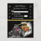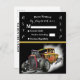 O RSVP do casamento da festa Hot Rod tem um carro antigo. Na parte inferior ao meio e um fundo preto com um local para colocar todo o texto de INFO.