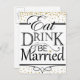Convite de casamento Eat Drink and be Married com confetes dourados e letras personalizadas