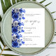Um fundo branco, decorado com flores azuis e brancas. Personalize e adicione seus nomes e detalhes.