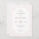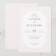 Este convite de casamento elegante apresenta um design clássico com listras verticais rosa e uma moldura ornamentada central, criando uma aparência equilibrada e sofisticada. A paleta de cores rosa suave e branco realça o clima romântico, enquanto a tipografia serifa adiciona um toque de elegância atemporal. Elementos decorativos como as bordas rendilhadas contribuem para o seu charme vintage, tornando-o perfeito para casais que buscam uma estética tradicional, mas refinada, para o seu dia especial.