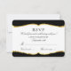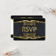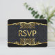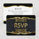 Convite de Casamento em Damasco Preto e Dourado com RSVP. Damasco Preto e Cinza
