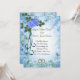 Convite de casamento ou festa com impressões românticas de rosas azuis e hera, com fitas azul e turquesa. Composição de imagem e ilustração. Personalize o texto e a fonte de acordo com as suas necessidades.