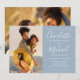 Com suas fotos especiais e nomes com estilo de assinatura, este convite de casamento elegante em azul poeirento pode ser personalizado com suas informações em letras sofisticadas. Criado por Thisisnotme©