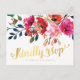 Cartões-postais de resposta de casamento elegantes com um fundo branco clássico, exibição floral de aquarela, um título tipográfico de folha de ouro falso elegante e um modelo de rsvp moderno.