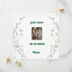 Celebre seu dia especial com este convite de casamento personalizado que apresenta uma moldura botânica suave de flores baby's breath e uma foto centralizada do casal feliz. O design inclui texto editável para nomes, data e local do casamento, tornando fácil personalizar para sua celebração única. Com acentos de folhagem elegante e um layout limpo e moderno, este cartão oferece a combinação perfeita de romance e simplicidade. Ideal para casamentos rústicos, de jardim ou com tema minimalista. Impressione seus convidados com um souvenir atemporal que captura amor e elegância em um só design.