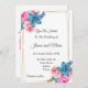 Convite de casamento com buquê requintado rosa e azul. nome, horários, datas e localização além de mais totalmente personalizável às suas necessidades