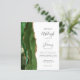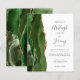A borda esquerda deste elegante convite de casamento moderno apresenta uma borda de ágata em verde caçador com acabamento em brilho dourado falso. O texto personalizável combina fontes manuscritas, copperplate e itálicas em cinza carvão sobre um fundo branco. O verso apresenta um design de ágata verde e dourado correspondente.