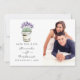 Cartões de confirmação de presença para casamento rústico charmoso em lavanda com fundo de lavagem em aquarela verde musgo.