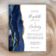A borda esquerda deste convite de casamento moderno e elegante apresenta uma borda de ágata em aquarela azul-marinho aparada com brilho dourado falso. O texto personalizável combina fontes manuscritas, copperplate e itálicas em cinza carvão sobre um fundo branco. O verso apresenta um design de ágata azul-marinho e dourado correspondente. NOTA: Os envelopes não estão incluídos automaticamente com esses convites econômicos, então lembre-se de escolher a opção "envelopes brancos"!