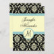 Convite de casamento em damasco com monograma Creme & Azul. Layout por Elke Clarke 2009. Gráficos licenciados. Mais designs disponíveis em WhiteWhimsicalWeddings.com e WhiteWhimsicalWeddings.blogspot.com. Personalize com seu monograma, nomes e cores de casamento. Adicione todas as informações do seu casamento na frente e no verso do cartão usando os prompts de menu fáceis de usar da Zazzle ou entre em contato conosco para designs personalizados.