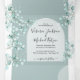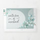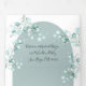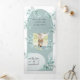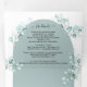 Folhas e ramos de eucalipto leves e arejados com arco moderno. Convites Tri-Fold tudo em um que vêm com cartões de resposta RSVP, detalhes e informações e uma foto do casal. Maravilhoso para um casamento com tema natural! Cores em tons de azul poeirento, verde e branco.