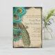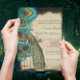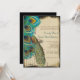 Convite de Casamento com Bordas de Pergaminho Falso Rústico e Pena de Pavão Romântica em Gaiola elegante o suficiente para o Roaring 20s e Casamento Gatsby, mas rústico o suficiente para um casamento rústico e luxuoso em celeiro.