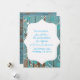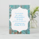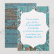 Fotografia de pintura descascando em madeira azul faz um lindo convite de casamento rústico.