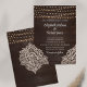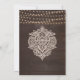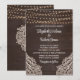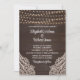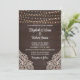 Adicione um toque de charme boêmio à papelaria do seu casamento com este Convite de Casamento de Madeira Marrom Rústica. O fundo de madeira marrom escura prepara o cenário para uma celebração mágica, adornado com luzes de corda brilhantes que criam uma atmosfera romântica. Delicados padrões de renda floral branca enquadram os cantos do convite, adicionando um toque elegante e feminino. A combinação de uma fonte de letra manuscrita vintage e uma fonte serif legível em branco cria um belo contraste contra o fundo escuro, garantindo que todos os detalhes sejam facilmente legíveis. Este convite é perfeito para casais que buscam um tema de casamento único e encantador. Defina o tom do seu dia especial com nossos convites de casamento Rustic Elegance que deixarão uma impressão duradoura nos seus convidados.