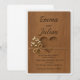 Um convite de casamento rústico encantador com fundo de textura de madeira natural, um recorte em forma de coração e um delicado laço de cordel com minúsculas flores brancas. Perfeito para casamentos no campo, celeiro ou ao ar livre, este design captura calor, simplicidade e elegância natural.