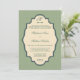 © Socialite Designs. Convite damask elegante feito para parecer vintage. Belas cores branco antigo e verde oliva. Se você gosta deste design, mas gostaria de ter produtos de casamento adicionais feitos, por favor não hesite em contactar Socialite Designs.