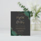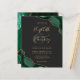 Um design de ágata em aquarela esmeralda verde cortado com brilho dourado falso aparece em dois cantos deste design elegante. Personalize-o com os nomes do casal em escrita à mão dourada sobre um grande e comercial. Adicione os detalhes do casamento em fontes cobre-placa e itálico douradas sobre um fundo preto de ardósia. O lado reverso apresenta um design de ágata verde e dourado correspondente.