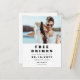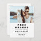 Um "BEBIDAS GRÁTIS E UM CASAMENTO DE BRINDE" moderno e engraçado, cartão postal de salvar a data do casamento. O design apresenta tipografia moderna na cor preta em um fundo branco e tem espaço para uma foto na orientação de paisagem. No verso do cartão postal, o design apresenta opções para mais detalhes, incluindo espaço para um endereço de retorno. Personalize o design substituindo o texto e a foto de exemplo. Mais estilos estão disponíveis em nossa loja.