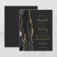 A borda esquerda deste convite de casamento moderno e elegante apresenta uma borda de ágata em aquarela preta aparada com brilho de ouro falso. O texto personalizável combina escrita à mão em cor de ouro, fontes copperplate e itálico em um fundo preto claro. A parte de trás é preta clara sólida. NOTA: Os envelopes não estão incluídos automaticamente com esses convites de orçamento, então lembre-se de escolher a opção "envelopes brancos"!