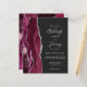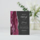 A borda esquerda deste elegante convite de casamento moderno apresenta uma cor d'água borrifada com borda cortada com cintilação falsa de prata. O texto personalizável combina a escrita manual de cinzas prateadas, fontes copperplate e itálico em um fundo fora do preto. O lado inverso apresenta um design de burgundy e agate prateado.