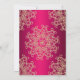 Um convite de casamento em tons de fúcsia e dourado com um padrão ornamental de sari indiano exótico. Este convite de casamento elegante e lindo no estilo indiano moderno é perfeito para qualquer ocasião formal. Criado por Chrissy H. Studios, LLC. Todos os direitos reservados.