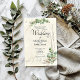 Convite de casamento Eucalipto e dourado Orçamento em branco. As folhas de eucalipto e os detalhes dourados adicionam um toque de elegância e sofisticação, enquanto o espaço em branco na frente do convite permite que você adicione seu toque pessoal.