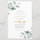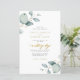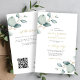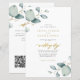 Elegante convite de casamento rústico botânico boho chic lindo verde sálvia aquarela folhagens folhas de eucalipto orçamento acessível tudo em um com caligrafia dourada falsa manuscrita e código QR para o seu site com todos os detalhes e RSVP online