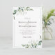 Faça a sensação romântica para o dia do seu casamento com este barato moderno design com a cor d'água das folhas de eucalipto. Há espaço no verso para quatro fotografias e seu código QR direcionando convidados para o seu site de casamento. **POR FAVOR, LEIA ANTES DE ENCOMENDAR** 1. Se você fizer alterações e o design for cortado ou não parecer direito na tela, use o Serviço de Design ao vivo para ajudá-lo a corrigi-lo. 2. Seu pedido vai diretamente para as impressoras. O que você vê na tela é o que será impresso e enviado a você. Verifique triplamente se há erros de ortografia ou informações incorretas antes de fazer seu pedido.