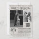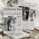 Personalize este convite de casamento clássico do tema único, tradicional e super divertido Jornal, com 3 fotos a preto e branco, manchetes de tipografia vintage e texto da história do estilo da coluna editorial, que também inclui um código QR e um site de casamento para RSVP. Adicione facilmente o seu texto, carregue as suas fotografias de noivado e o seu código QR para que seja o seu! Você pode editar ainda mais o posicionamento dos componentes do design, clicando no botão azul "Editar usando a ferramenta design" na parte inferior da janela "Personalizar" - navegue até a guia "camadas" na coluna esquerda da tela de edição, selecione a camada frontal ou traseira, clique no elemento da camada que você gostaria de alterar e clique no botão "concluído" quando terminar de seu gosto. população: população pode receber solicitações de design personalizadas e perguntas de modelo - clique no botão "mensagem" ou envie um e-mail diretamente: contact@figandlilyco.com. As fotos são apenas para fins de espaço reservado e devem ser substituídas. O Design é carinhosamente criado por Fig e Lily Studios, e o crédito fotográfico do noivado de nossa filha vai para IG: @laurenmargaretphotoographic