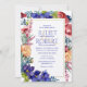 Disposição floral de aquarelas de flores azuis/roxas profundas complementadas com flores vermelhas com uma estrutura retangular dourada. Dourado complementarmente. Todos os tipos são personalizáveis.
