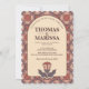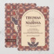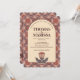 "Celebre seu dia especial com este elegante convite de casamento com um sofisticado padrão floral de vitral Art Déco. Os tons terrosos de rosa poeirado, malva e terracota criam uma estética retrô-moderna atemporal. Por favor, note que as cores do padrão de fundo são 100% ajustáveis e personalizáveis para combinar perfeitamente com a paleta do seu casamento. Este design de dupla face inclui um código QR conveniente no verso para fácil acesso dos convidados ao seu site de casamento e detalhes do evento."