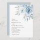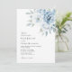 tema de cor azul empoeirado do casamento com flores aquáticas. O texto e as cores podem ser editados.