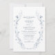 Celebrar um casamento elegante com este convite floral azul francês estilo vitoriano. Apresentando flores azuis com folhagem em volta da informação de convite. Na parte de trás está acabado com um delicado padrão foliar. Verifique se há outros pedaços correspondentes na coleção.