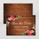 Cartão de Anúncio de Noivado e Convite de Casamento Floral Boho Burgundy Marsala em Madeira Rústica