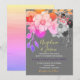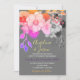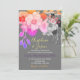 Faça uma declaração ousada com este convite de casamento boho colorido, apresentando uma ilustração floral dramática em rosa, roxo e laranja inspirados em neon sobre um fundo carvão profundo. As texturas em camadas e a paleta vívida são perfeitas para casais que planejam uma celebração de casamento artística, eclética ou alternativa. Personalize facilmente com seus nomes e detalhes do evento.